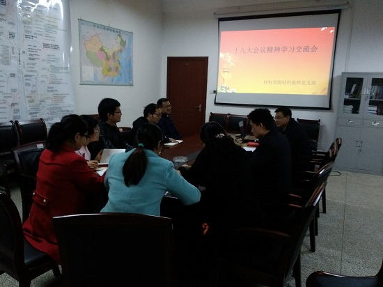 在交流活动伊始,各支部全体党员齐唱国歌,重温入党誓词,现场缴纳了11月份党费。在学习交流活动中,党员教师们就党的十九大精神进行了热烈的讨论和学习,党员们纷纷表示,党的十九大是在全面建成小康社会决胜阶段、中国特色社会主义进入新时代的关键时期召开的一次十分重要的大会,具有极其重要的政治意义、历史意义、理论意义、实践意义和世界意义;把党的十九大精神学习好、宣传好、贯彻好,是当前和今后一段时期首要的政治任务;作为一名高校教师,要深刻认识党的十九大的意义、全面准确学习贯彻党的十九大精神、认真践行高校立德树人这一根本任务。最后,各支部党员教师就如何开展党建工作与本职工作相结合进行了深入交流和探讨。