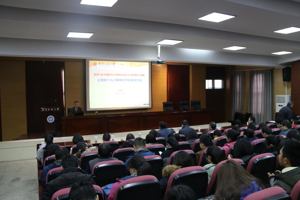 12月7日上午,副董事长罗锦银在行政楼二楼学术报告厅作党的十九大精神宣讲报告,他的报告以《高举习近平新时代中国特色社会主义思想伟大旗帜 让党的十九大精神在学校落地生根》为主题,从“怎么学、学什么、如何做”三个方面为广大党员干部学习贯彻党的十九大精神作了精彩讲解。402永利集团、纺织学院全体教工、机关党委员工会支部和资产与后勤管理处支部100余人聆听了报告会。报告会由委书记罗汉春主持。