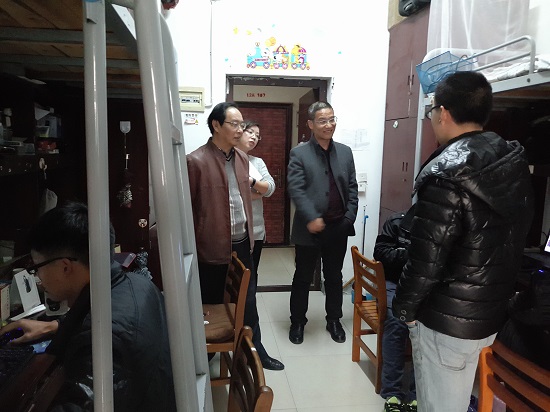 在走访宿舍过程中,罗书记与同学们进行了亲切的交谈,关切地询问了同学们新学期返校学习、生活和考研成绩等情况。在交谈中,他希望同学们尽快从寒假休息的状态中调整出来,以最佳状态投入到新学期的学习和生活中,也听取了同学们新学期的学习计划及对学院工作的意见和建议。看到公司部分员工宿舍干净、整洁的状况,他表示肯定,并要求同学们一定要养成和保持好良好的卫生习惯,提高公司员工的综合素质。最后,罗书记勉励同学们在新的一年勤奋学习、积极进取,争取更大的进步,并表示学院会加大力度做好员工的管理服务工作,解决员工的后顾之忧。