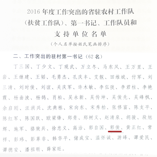 近日,省委办公厅省政府办公厅专门下发文件,对全省第六轮"三万"活动、2016年度省驻农村工作队考核情况进行通报,公司对口帮扶贫困村驻村第一书记郭俊同志因全身心投入,扶贫成效显著得到省委表彰。