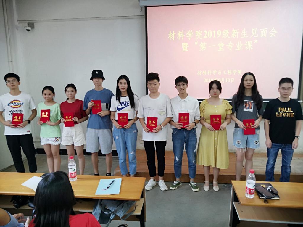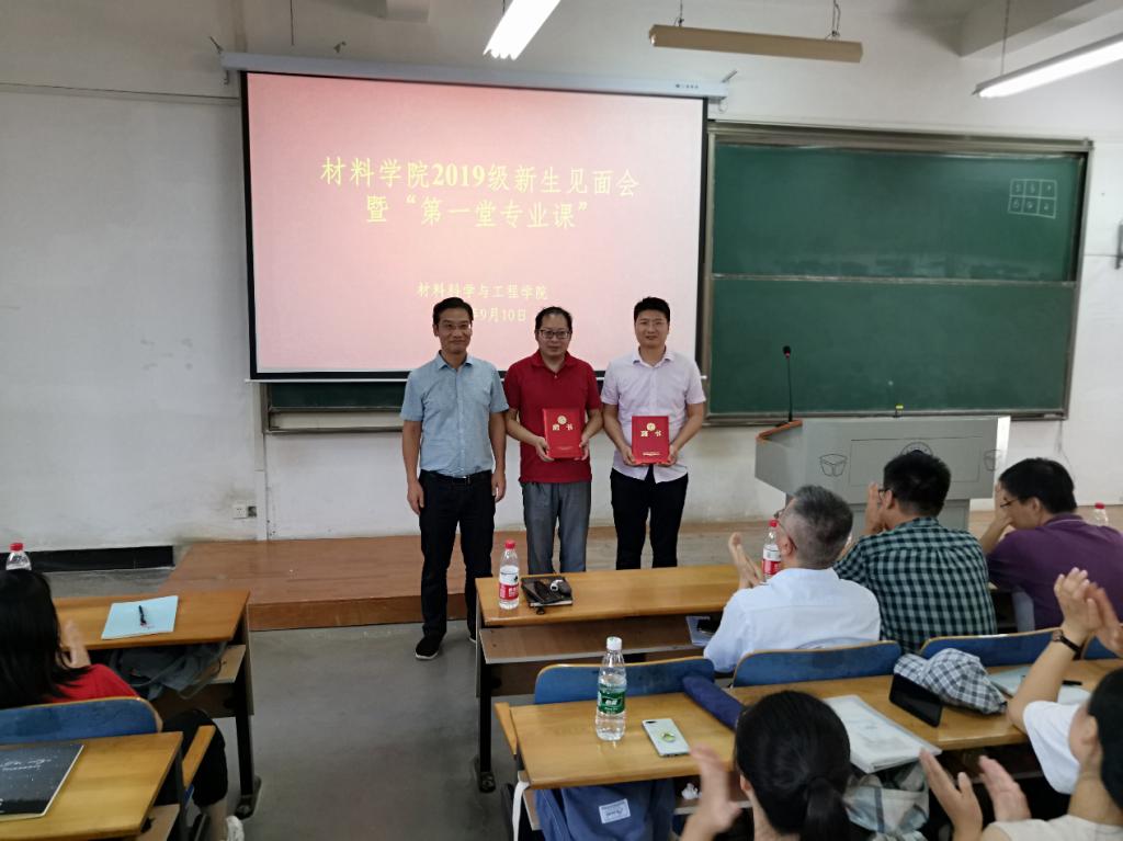 随后,2019级新生班主任、副班主任受聘仪式开始。402永利集团经理王罗新教授为新生班主任代表邓波老师和徐杰老师发放聘书;辅导员祝捷老师向2019级副班主任依次颁发了聘书。