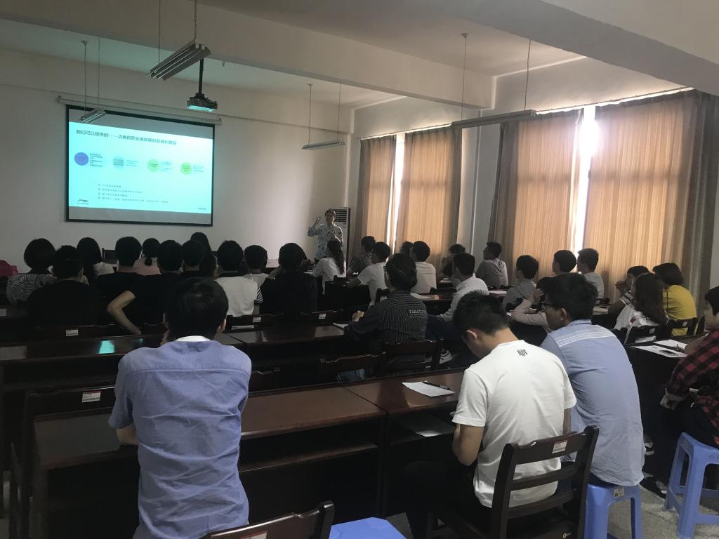 此次招聘会特别邀请了李宁公司北京总公司、广东分公司和武汉分公司人力资源负责人以及402cc永利官网99级优秀员工邵传芳,部分2014级员工参加了此次会议。