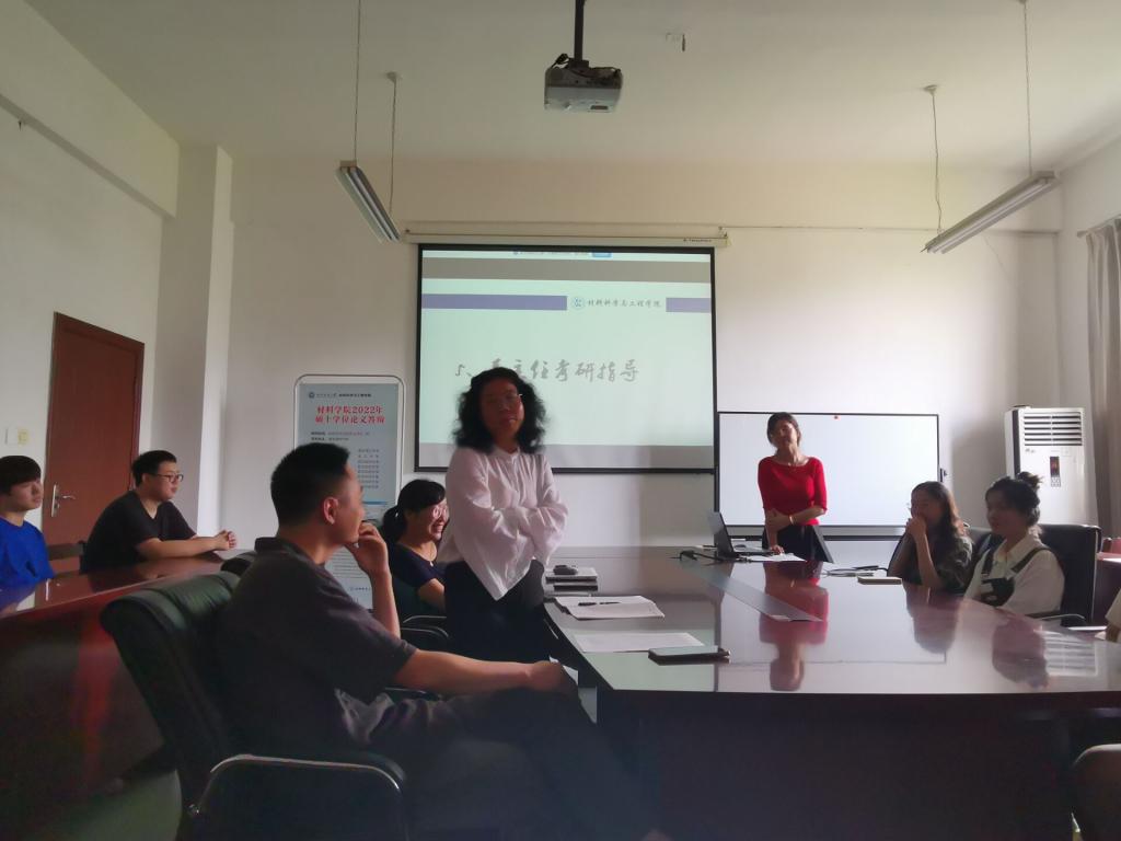 谭海英老师建议同学们在备考过程中有任何问题随时与老师联系,畅通信息沟通渠道,助力员工考研成功。朱宗明老师从专业的角度对考研院校选择给予了指导,并表示希望同学们不扎堆报考,多看多对比,选择自己适合的院校。高分子系主任左丹英老师给同学们提出两点建议:一是要对材料专业有信心,材料方向就业前景良好,希望同学们能够在本专业深耕发展;二是要慎重跨考,认真分析了跨考的风险和难度,引导同学们认真选择报考专业和报考学校。
