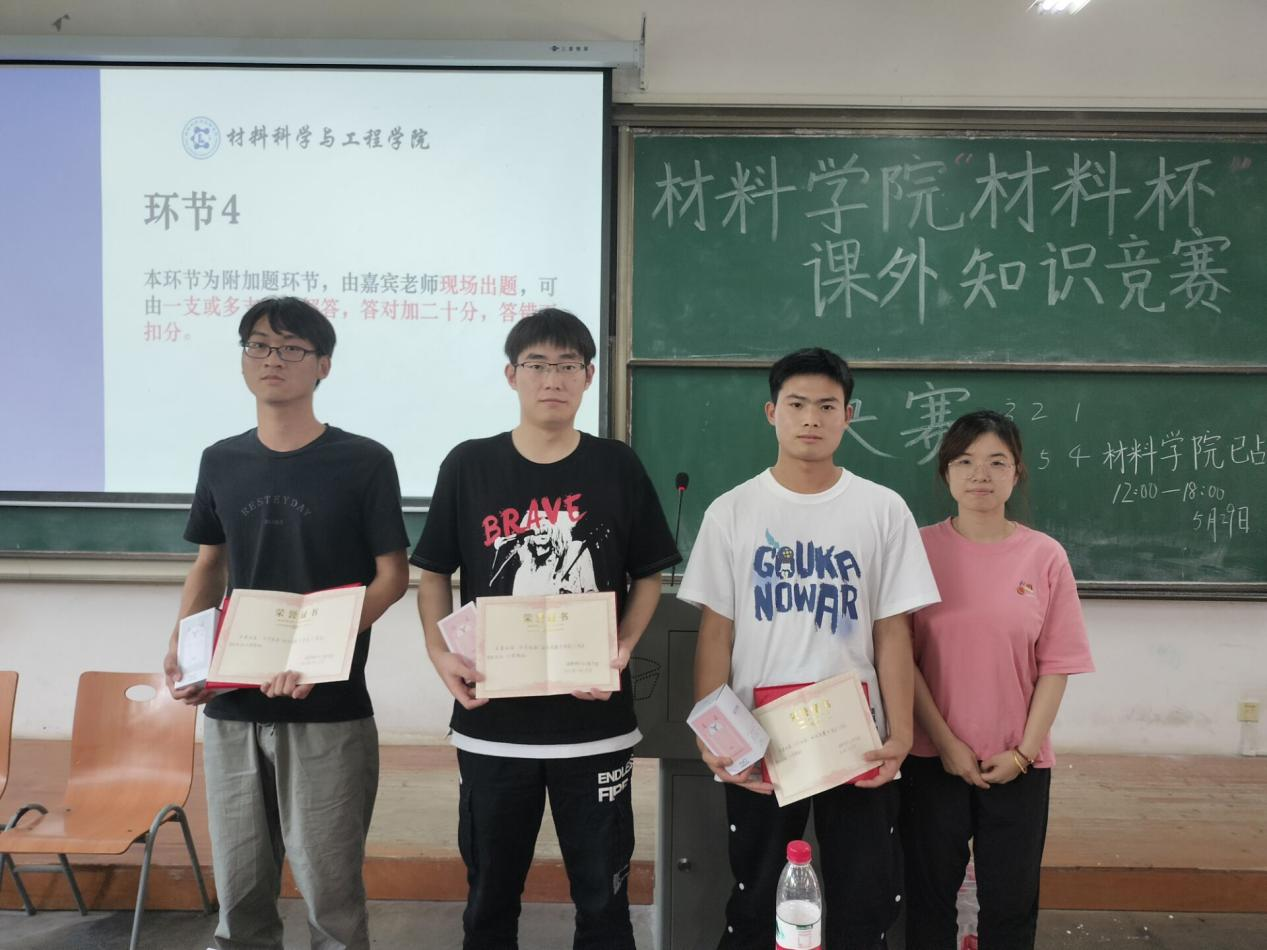 为了丰富同学们的课余生活,营造良好的学术科研氛围,进一步提高员工专业素养,增强团队合作精神和团体凝聚力,公司举办“材料杯”课外知识竞赛决赛,活动于2022年5月29日下午2点在3-118教室举办。402永利集团副经理顾绍金教授、材科12001班班主任鲁振坦、402永利集团辅导员毛成兴老师、曾玉竹老师受邀并出席本次竞赛。