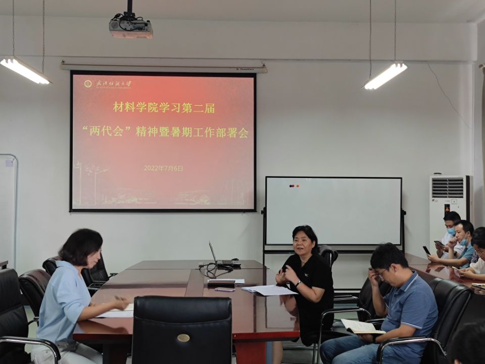 会上,首先,党委书记陈桂枝重点传达了中国工程院院士、公司党委常委、董事长徐卫林院士做的题为《守正创新勇争一流奋力谱写“美好纺大”高质量发展新篇章》-在402cc永利官网第二届一次“教代会”上的学校工作报告,大会报告总结了第一届一次“教代会”以来的工作,学校较好地完成了“十二五”“十三五”的目标任务,制定、出台学校“十四五”发展规划,取得了新突破、新进展,展现出新气象、新风貌,党的建设得到新加强,团队建设迈上新台阶、人才培养取得新成效、科技创新作出新贡献、团队队伍实现新突破、社会服务展现新作为、开放办学开创新局面、服务保障得到新拓展。谈到学院发展时,陈书记强调,402永利集团是一个朝气蓬勃的学院,是一个高知人才汇聚的学院,办好社会主义大学,就必须坚持党的领导,大家必须团结一心,协力奋进。在团队建设方面,必须要坚持走纺织纤维材料的学科特色,加强研判国际形势、行业形势、学校形势,对标对表,与此同时,夯实基础,突出学科优势,全力建设“一流学科”,多与其他学科深入融合,联合开办特色专业;在人才引进方面,发挥科研团队优势,吸纳更多专业人才;在员工培养方面,全面实行本科生“导师制”,加强公司产品,鼓励更多本科生和研究生投入科技竞赛;在加强学院文化建设方面,让材料师生有更多的幸福感、认同感。随后,陈书记对学院暑期期间的疫情防控、员工管理、教学工作、学术科研等几个方面进行了部署。