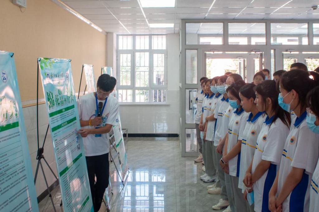 实践团殷先泽教授为同学们带了了“小棉花大应用”专题科技讲座。殷教授为精河高中同学们详细讲解了棉花等纺织材料在航空航天、医用生物、可穿戴设备等各个领域的实践运用,同学们对神奇的纺织世界感到震撼,频频向殷教授提问,殷教授耐心解答,并结合同学们日常生活中的事例进行讲解。