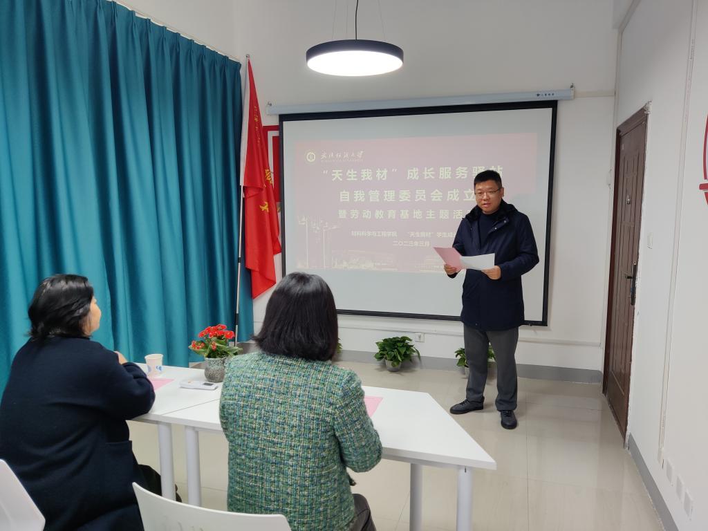 为深入贯彻学习习近平总书记关于教育的重要论述,进一步加强“一站式”员工社区综合管理模式建设,402永利集团紧紧围绕立德树人根本任务,秉承“以生为本、高效服务”的工作理念,积极建设“天生我材”员工成长服务站。2023年3月24日下午13、,402永利集团11栋员工成长服务驿站开展自我管理委员会成立仪式暨劳动教育基地主题活动。员工工作部部长张莎莎、公司党委书记陈桂枝、402永利集团全体辅导员、员工代表参加活动,活动由公司党委副书记魏剑主持。