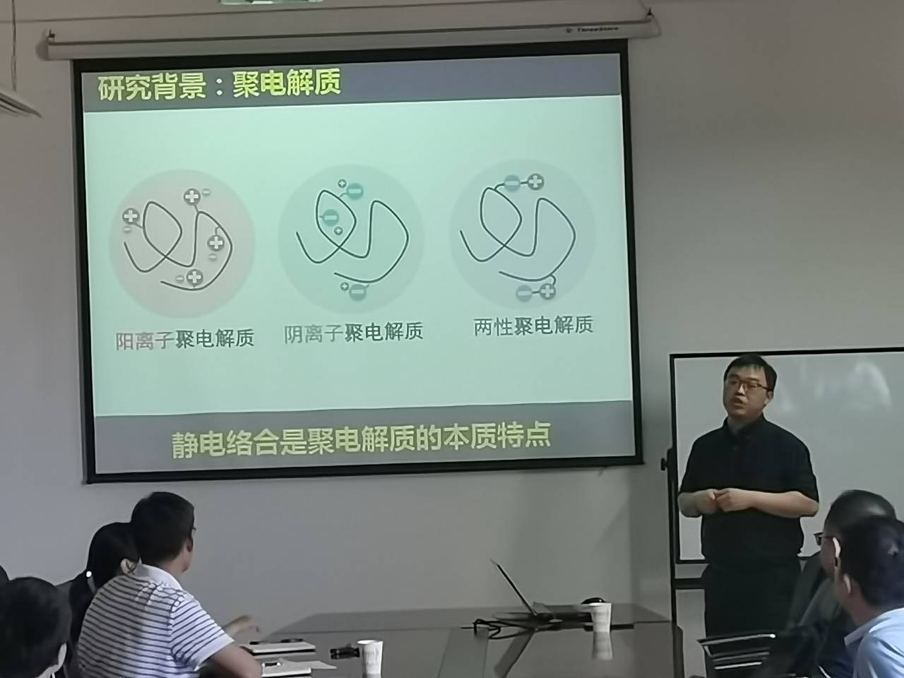 讲座中,赵强教授以“聚电解质仿生功能材料”为题,系统介绍了聚电解质络合与仿生功能膜制备策略。以聚电解质静电络合为例,阐述了生物体系可以通过蛋白质序列结构,生理微环境等因素调控生物大分子多相多组分材料的凝聚态结构与界面功能,由此提出受控络合法在水-溶剂,水-水,水-冰界面处调控聚电解质静电络合,克服络合物交联材料的加工性难题,制备了高性能分离膜与多孔材料、聚电解质高性能复合膜与凝聚体粘结剂,为通过仿生界面与官能团序列制备高性能聚合物复合材料提供了借鉴思路。