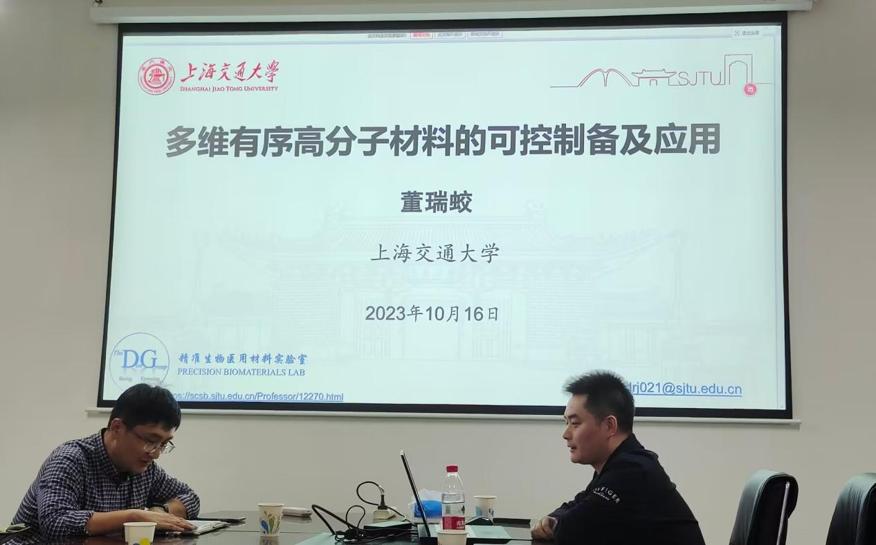序列可控高分子材料(Sequence-Controlled Polymers)作为前沿新材料的一个重要分支,其在信息存储、仿生模拟、纳米科技,以及生物医药等领域中展现出了广泛的应用前景。本次学术报告聚焦于如何通过可控合成策略制备具有精准链长、可控序列的合成高分子,旨在深入了解探索这类材料分子基础、结构与性能的关系,以及其与生物体的作用机制。董瑞蛟特别研究员在报告中分享了他们的研究成果,着重探讨了通过位点特异的化学改性对其进行精准的序列调控及结构修饰,从而赋予这类材料特异性的物化性质,以及光学、电学、生物功能特性。在报告中,董瑞蛟特别研究员还介绍了这些精准、特异性的生物医用材料新体系在化学、材料、生物医药和其他领域的应用潜力的影响。这些见解为未来的生物医药应用提供了重要的指导。