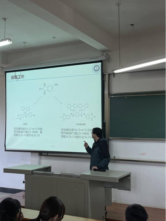 11月25日,402永利集团王浩、李仁豪、潘殿坤三位同学分别给学院全体研究生以“基于三氮唑设计合成新型阻燃剂及在环氧树脂上的应用”、“水溶性壳聚糖PEO抗菌敷料的制备”和“聚苯硫醚纤维基柔性电极超级电容器“为主题的三场专题报告。