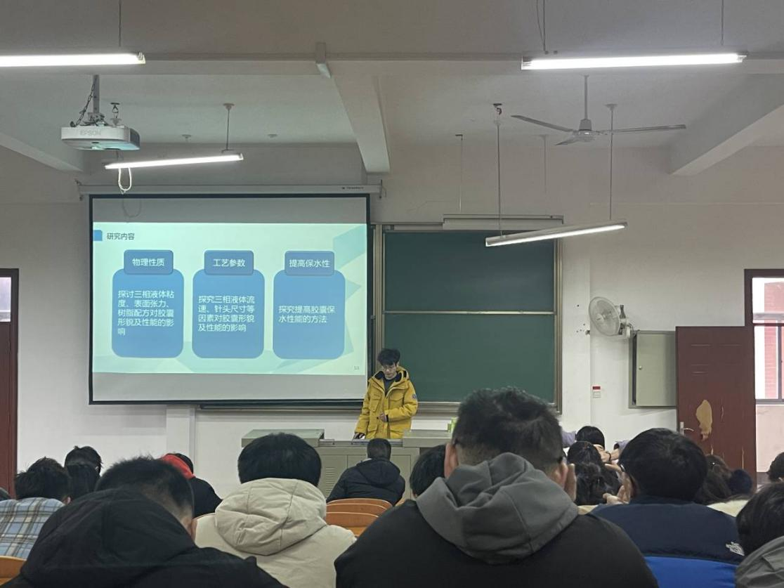 12月28日,402永利集团冷佩、游松、李铈东三位同学分别给学院全体研究生作以“一种新型Z向增强泡沫夹芯复合材料试验及数值分析” 、“水泥基极板用于电絮凝去除重金属离子的研究”和“基于微流控技术制备毫米尺度高含水胶囊及性能研究”的专题报告。