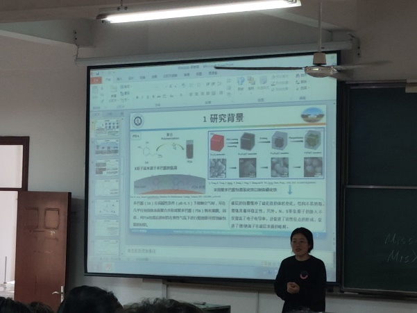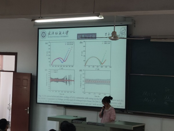 接下来,张云同学详细介绍了她的研究题目:“用于锂离子电池的氧化还原活性NiS/细菌纤维素纳米纤维符合隔膜具有优异的倍率功能”,强调了这项研究在新能源领域的潜力和应用。