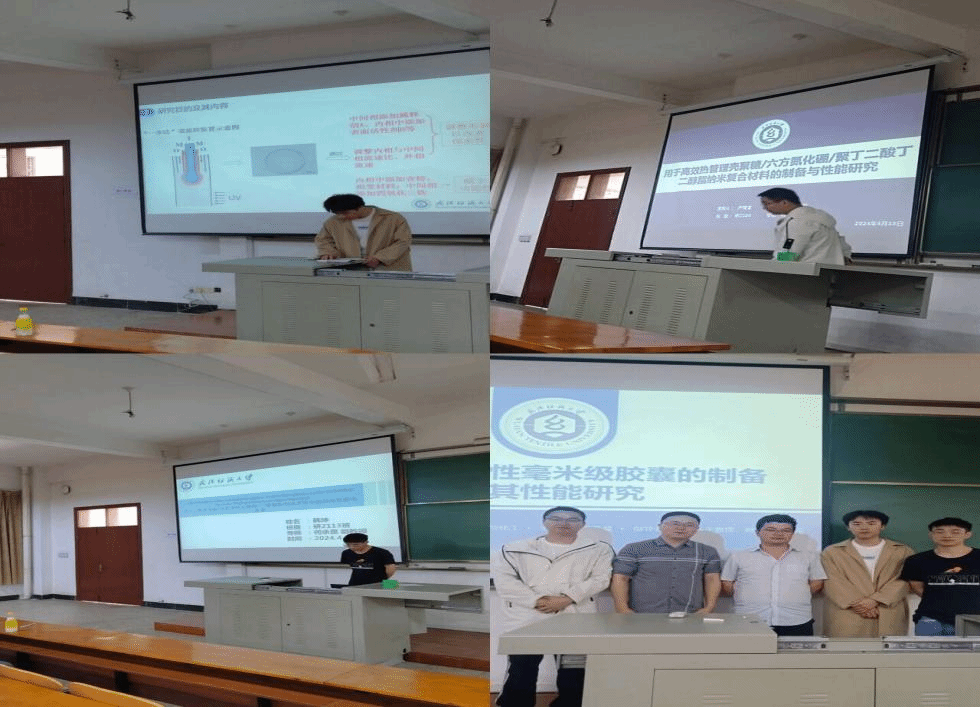 首先,潘阿晨介绍了他的研究成果,题为“电无渗漏功能性毫米级胶囊的制备及其性能研究”。他的研究旨在解决胶囊材料的渗漏问题,并探索了其在功能性方面的应用潜力。接下来,严珺宝详细介绍了他的研究题目:“用于高效热管理壳聚糖/六方氮化硼/聚丁二酸丁二醇酯纳米复合材料的制备与性能研究”,他的工作聚焦于纳米复合材料的制备及其在高效热管理中的应用,为解决热管理领域的挑战提供了新思路。最后,韩坤报告了“A flexible three-dimensional polyaniline/reduced graphene oxide/melamine foam for high-performance supercapacitor”。他的研究探索了柔性三维聚苯胺/氧化石墨烯/三聚氰胺泡沫材料在高性能超级电容器中的应用,为新型储能材料的开发提供了新的方向。
