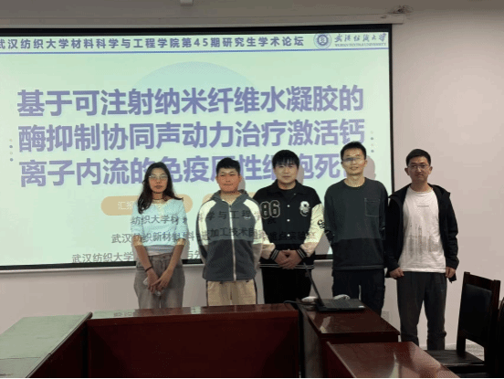 李政国同学专注于风电叶片芯材研究,设计了DGP和GPC等多种构型。经实验、测试与分析,这些构型可大幅提高夹芯结构峰值载荷和断裂极限承载力,在裂纹扩展方面有独特规律,为风电叶片性能优化提供关键支撑,有助于提升叶片质量、推动清洁能源发展。刘昱彤同学研究纳米金属材料,针对AgNWs不足,用PANI衍生物对其表面改性,成功研制出高灵敏纤维基温度传感材料。该材料灵敏度高,TCR达47.4%/℃,稳定性强,放置三月仍保持高灵敏度,应变性能也很优异,为柔性温度传感器发展注入新活力,在智能穿戴、环境监测领域应用潜力大。乐威同学围绕可注射纳米纤维水凝胶开展肿瘤治疗研究,构建酶抑制协同声动力治疗体系。经多种实验检测,该体系可激活钙离子内流、诱导免疫原性细胞死亡、增强肿瘤细胞免疫原性并引发免疫反应,为癌症治疗带来新希望,有望改善肿瘤治疗效果。此次论坛为研究生搭建交流平台,推动学术创新与学科发展,这些成果前景广阔。