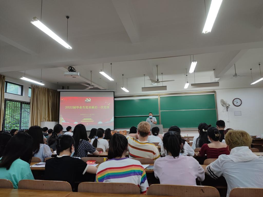 为贯彻落实上级有关文件精神和工作要求,确保2022届毕业生党员组织关系、组织档案转移工作顺利进行,402永利集团于6月6日晚在6-111组织开展了毕业生党员专题教育和最后一次党课,党课主题是“如何做一名合格的共产党员”。会议由402永利集团员工二支部书记毛成兴主持,员工一支部书记曾玉竹老师参加了会议并发言。