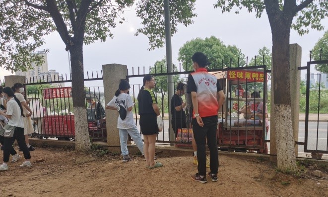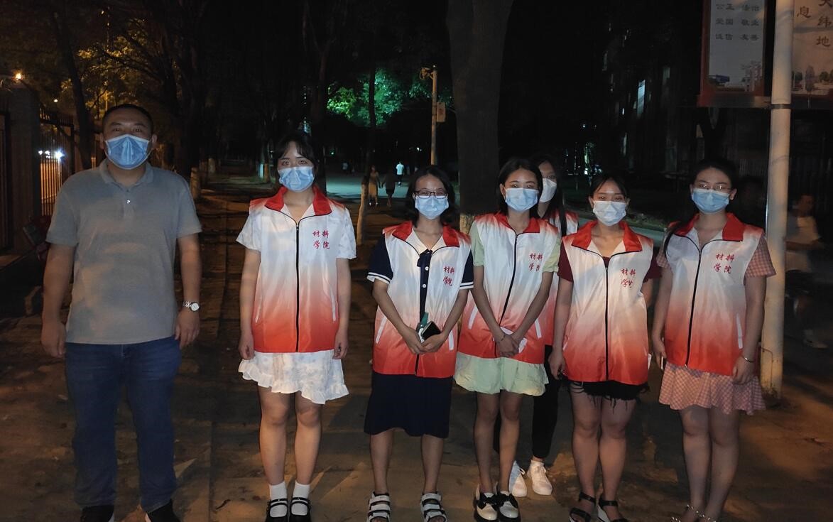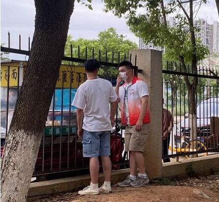 6月8日晚,402永利集团毕业生党员积极报名参加校园疫情防控巡逻志愿服务活动,提醒正在校园围栏处购物的同学们戴好口罩、做好个人防护。