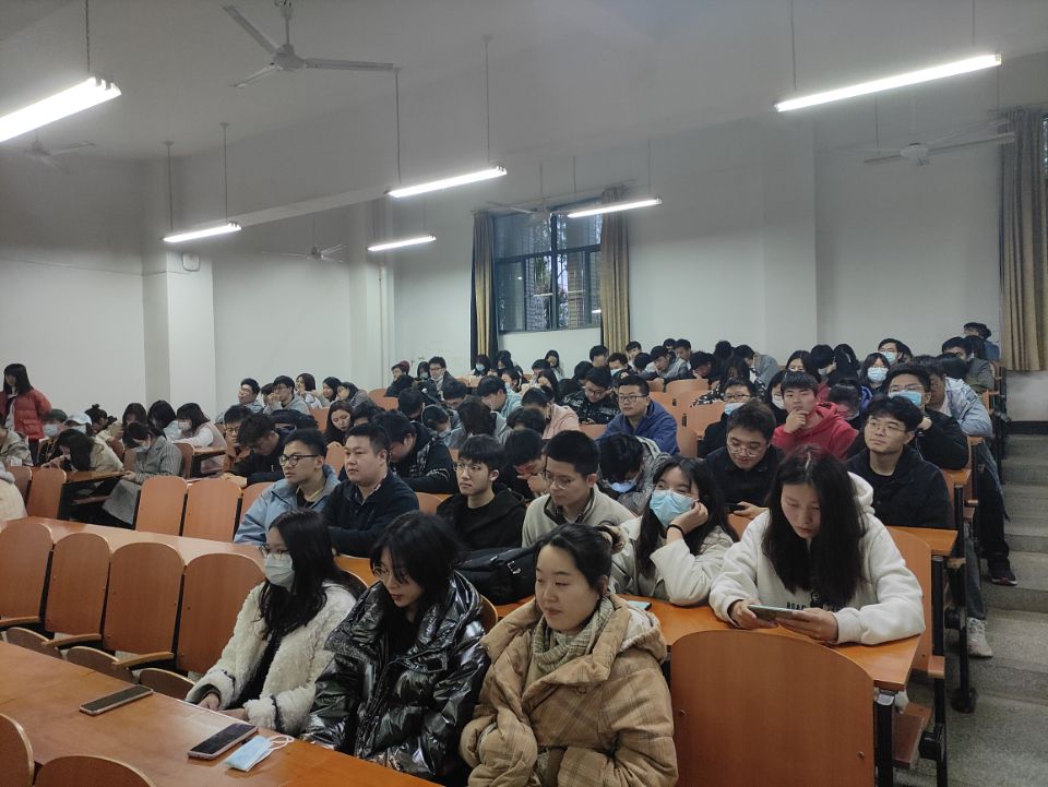 毛老师先带领同学们一起观看了视频《少年》,随后从部队简介、入伍基本条件、入伍流程、老员工参军特别优惠政策和军营生活等方面做了简要阐述,分析了国家和湖北省政府对在武汉参军入伍老员工的相关政策以及参军对员工本人的影响,鼓励同学们积极响应国家号召,立志献身国防事业,号召同学们踊跃登记报名,为国防建设奉献青春力量,为学校和学院增光添彩。