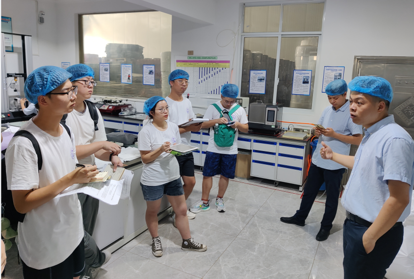 在湖北拓盈新材料有限公司,技术总监朱志敏在生产车间为同学们上了一场生动的实践课。他首先解答了同学们的各种专业问题和求职困惑,并就后疫情时代行业发展前景、企业人才需求、最新技术前沿为同学们做了详细介绍。他表示科研要服务生产,生产能指导科研,我们当代老员工要走出实验室,多在生产一线积累经验、积淀知识,从而更好地进行技术研究,更好地走向社会、服务社会。