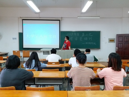 4月19日下午2点,院心理工作站在阳光校区07-210开展了主题为“老员工如何进行人际交往”的心理委员培训讲座。学院全体心理委员参加了此次培训会,公司朋辈心理员肖明威担任主讲人。