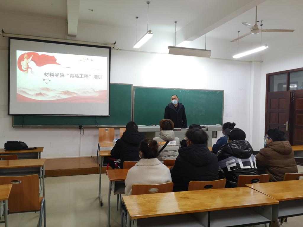 2020年11月27日晚,402永利集团2020年“青马工程”培训会在6栋教学楼106开展。402永利集团员工党支部书记毛成兴围绕“不忘初心、牢记使命”和 “中国共产党人的精神”主题,向青马学员传递红色精神和理论知识。