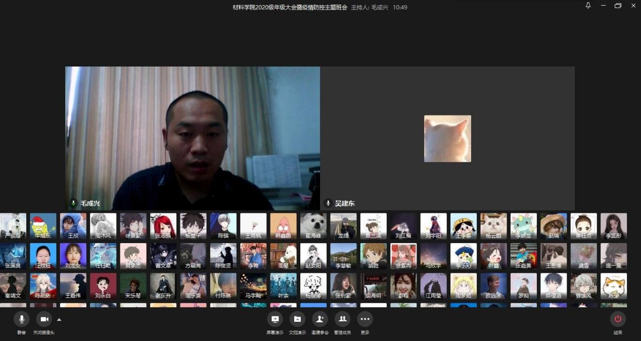 2020级辅导员毛老师首先带领同学们学习了省委书记应勇在全省新冠肺炎疫情防控工作会议上的讲话,从“针尖大的窟窿能漏过斗大的风”的谆谆告诫谈起,强调了疫情防控的长期性、艰巨性、复杂性,要求全体同学增强大局意识和责任意识,坚决抵制麻痹思想和侥幸心理,配合学校和户籍所在地做好疫情防控相关工作。接着,毛老师详细介绍了学校开学前后疫情防控相关工作安排,尤其强调了不得提前返校、坚持每日健康打卡以及返校前14天的健康监测和活动轨迹监测要求。特别提到,处在中高风险区域的同学一律暂缓返校,具体返校时间视情况另行确定。要求全体同学增强法律意识和纪律观念,严守地方的防疫政策和学校的校纪校规,疫情防控期间的违规违纪行为都将从严处理,还就目前学院发生的两起违纪违规同学的处分情况做了警示教育。最后,针对同学们暑假剩余时间的安排,毛老师提出做总结、多读书、爱学习、养习惯等期望,并回答了同学们暑期遇到的各种问题。