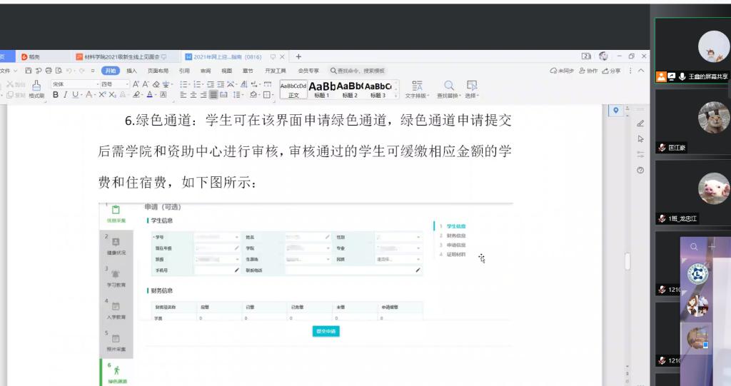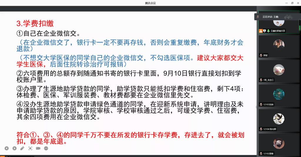 为了使2021级新生全方位了解402永利集团,增进同学之间联系,顺利完成网上报到,8月19日上午十点,公司召开2021级新生线上见面会,对同学们比较关心的问题,如生源地助学贷款、学费缴纳、档案转接、迎新系统进行了详细的讲解。2021级新生辅导员、副班主任及全体新生参加会议。