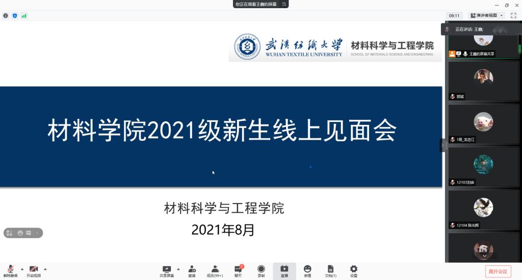 首先,辅导员王鑫老师进行了简短的自我介绍,并介绍了学院基本情况,讲解了一下2021级新生的基本情况,大家来自全国的19个省份,男女比例3:1等。欢迎来自全国各地的186名新生加入材料大家庭。