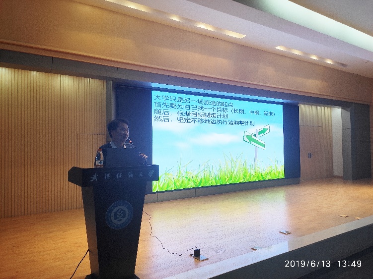 讲座伊始,黄老师对高冠斌的应邀表示衷心的感谢,并向在座的同学们介绍主讲人高冠斌在纺大努力拼搏,追逐人生梦想,成为武汉理工大学硕士导师的传奇经历。