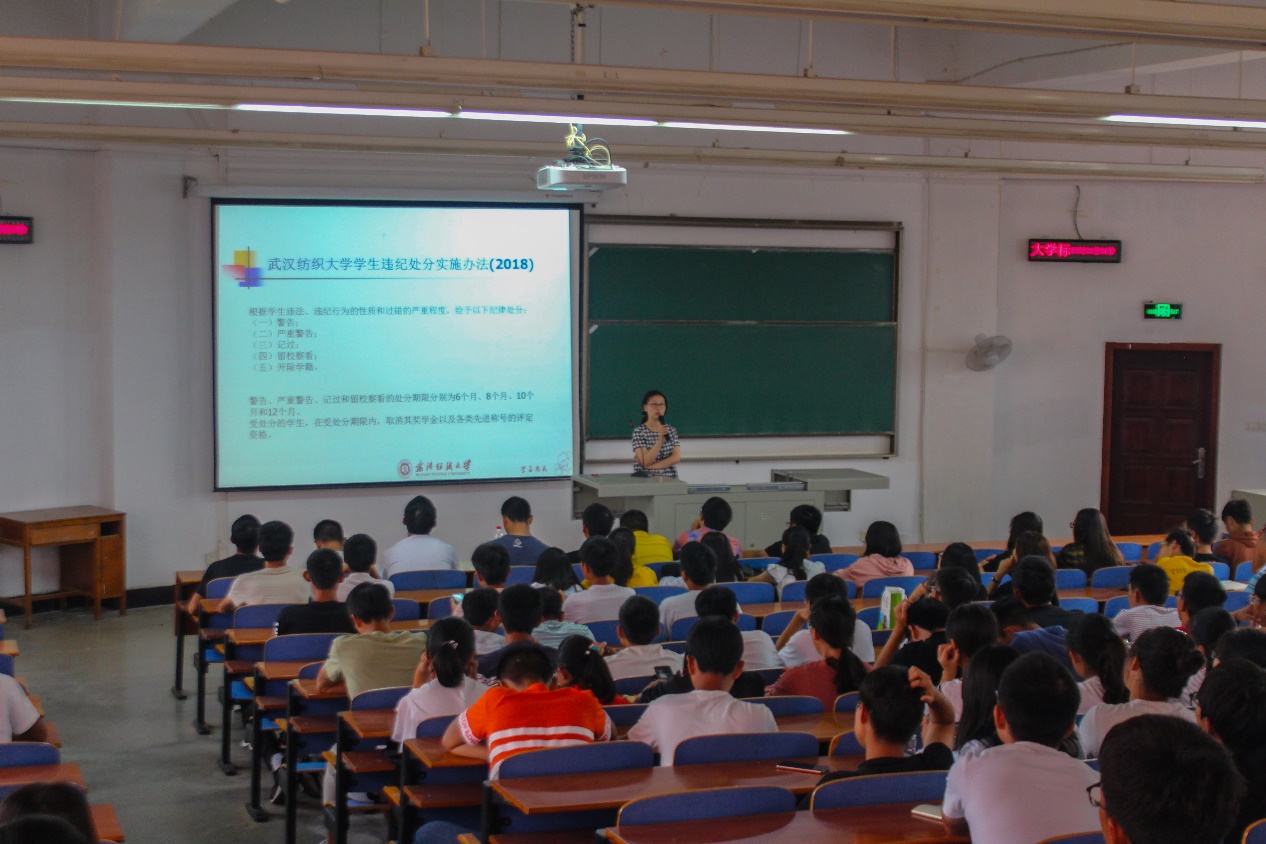 9月30日上午,2018级新生辅导员黄鹤老师为2018级新生详细讲解了学籍管理、奖助学金、日常管理相关规定等。黄老师重点介绍了转专业,休学,退学,重修的问题、学分的构成,选课的问题、老员工管理规定、本科生考勤及请假管理方法、每周班会及晚点名工作、老员工综合测评积分实施办法、本专科员工国家助学金评选管理办法、本专科家庭经济困难员工认定工作实施办法这八个方面,使新生对大学的规章制度有了一个全面的认识。