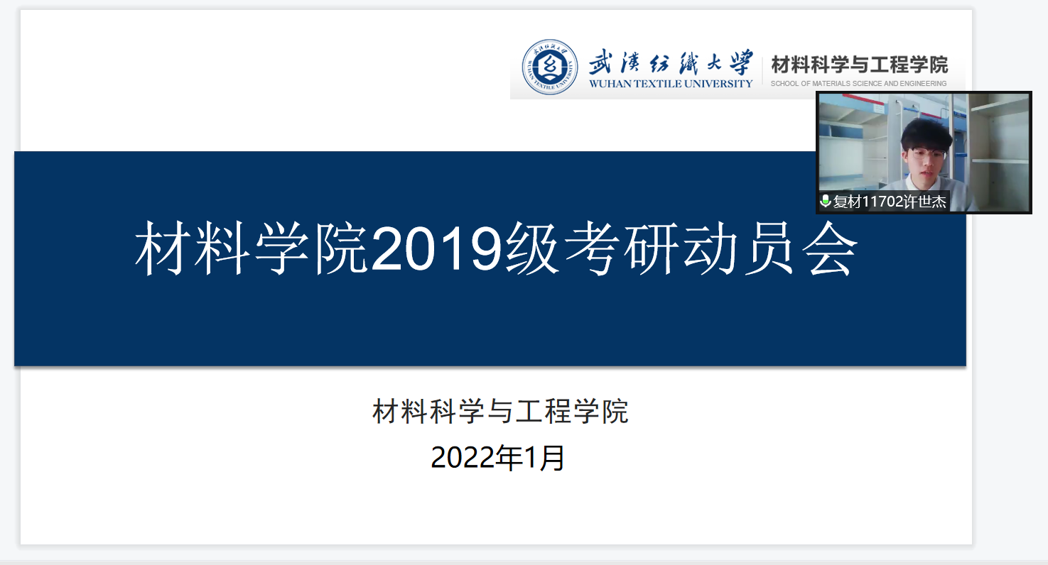 为进一步提高402永利集团2019级员工考研报考率、过线率,1月11日下午,在腾讯会议举办了402永利集团考研经验分享会。邀请了2021届毕业生许世杰(现天津大学研究生)、2018级姜鑫(2022考研报考武汉理工大学)、王萱(2022考研报考中国地质大学(武汉))主讲来分享考研经验,402永利集团副书记侯畅、19级辅导员王鑫以及19级全体员工参加会议。