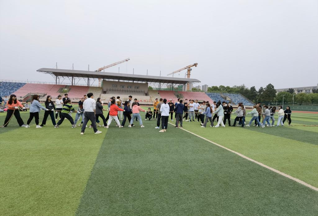 太阳刚升起,三个学院的员工干部带着准备好的道具来到了阳光校区田径场,为上午的活动布置场地。上午的活动主要体现的是“动”,体现的是研究生机体能力,活动主要有:心灵手巧、盲人旅行、丢沙包和拔河。活动伊始,本着学院交叉的原则将员工进行的分组,秉承公平、团结、友谊竞赛的原则,团结一心、奋力拼搏,赢得了场下观众们的阵阵呐喊和欢呼!