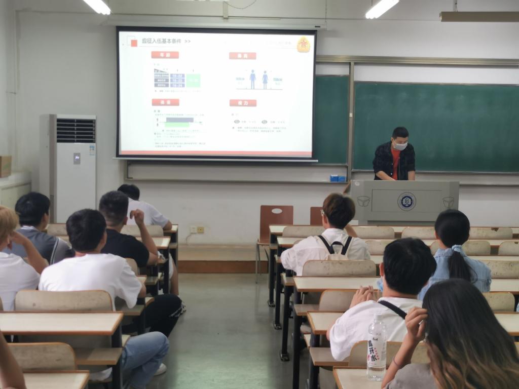 公司征兵负责人毛成兴老师着重从参军优待政策和对个人成长的帮助方面介绍了2022年秋季参军入伍的注意事项,以及学校为退役老员工士兵提供的各项服务保障,并强调参军入伍要谨防上当受骗,只有全国征兵网一处报名渠道且体检等完全免费。毛老师鼓励同学们携笔从戎,报效祖国,