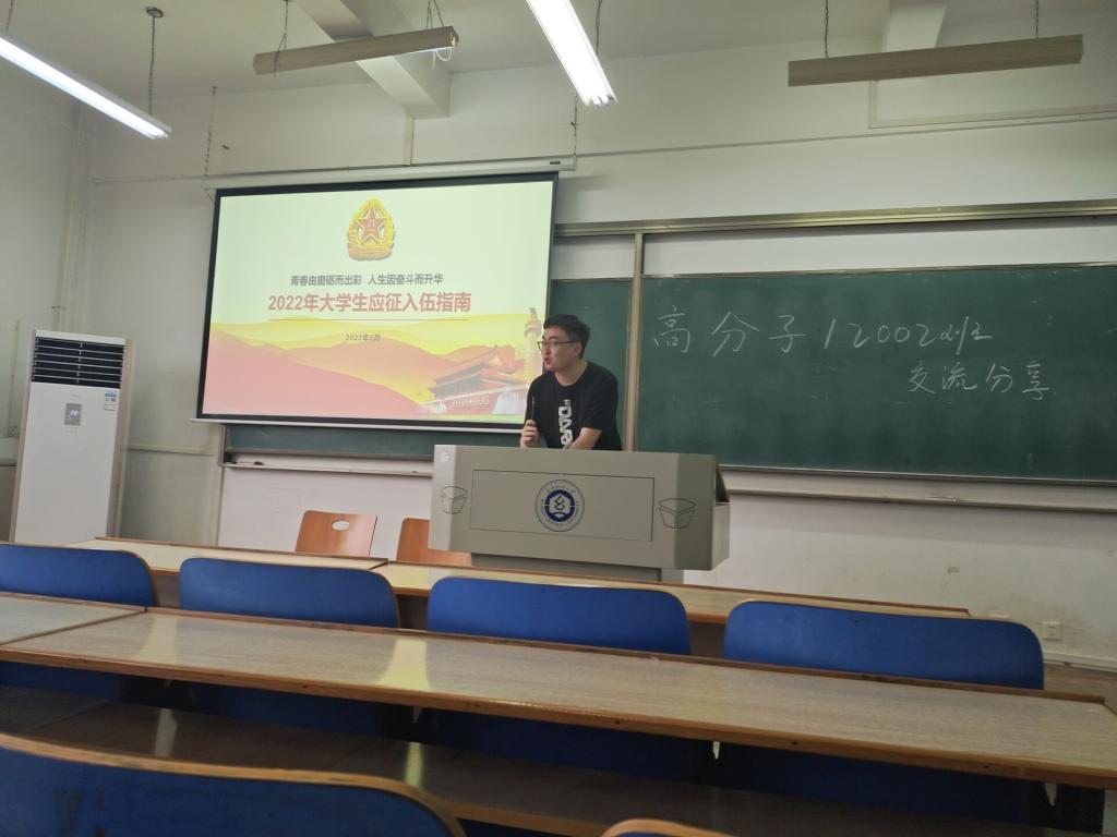 各班班长召开征兵宣传主题班会,从部队简介、应征入伍基本条件、入伍流程、老员工参军特别优惠政策、军营生活等方面详细解读了2022年征兵政策,并着重提到了部队对毕业生参军的优待政策,在同学们心中埋下了参军入伍的种子。