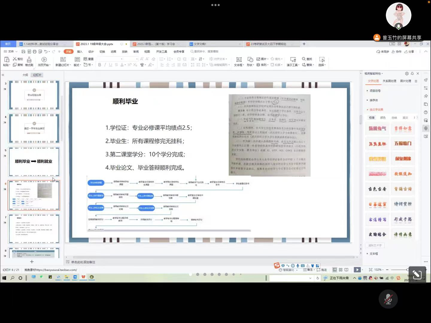 首先,曾老师从顺利毕业与顺利就业两个方面入手,详细讲解了毕业条件及大四下学期的考研、求职及毕业安排,特别介绍了西部计划、三支一扶、老员工村官、征兵入伍等基层就业计划,提醒同学们对照自身情况尽早行动。随后,又分别介绍了2-6月的毕业工作要点,帮助同学们系统梳理了下学期毕业工作安排,让同学们做到心中有数,并就同学们关注的毕业答辩、校园管理、春季招聘等事宜进行逐项解答。最后,曾老师给同学们几点建议:一是心态稳定、提前规划、及时行动;二是加强体育锻炼,提高身体素质;三是杜绝等、靠、要的思想,积极寻求解决办法;四是充分考虑时间成本、经济成本、试错成本,为自己即将到来的毕业提前谋划、做足准备。