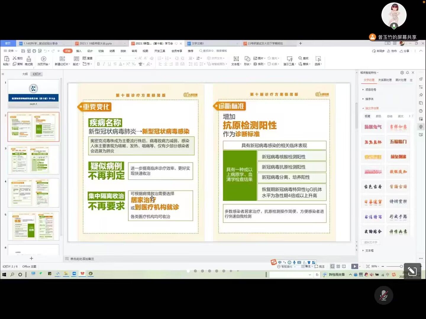 19级辅导员曾老师就《新型冠状病毒肺炎诊疗方案第十版》和《学校新型冠状病毒感染疫情防控操作指南》召开专题学习会,从日常防护、具体变化、心态调整等方面帮助同学们提高认识,并进一步树立自己是自身健康第一责任人的意识。同学们认真学习相关内容,并积极做好自身健康地保障员也科学知识的传播员,平安度过新春佳节,以崭新的姿态迎接新的学期。