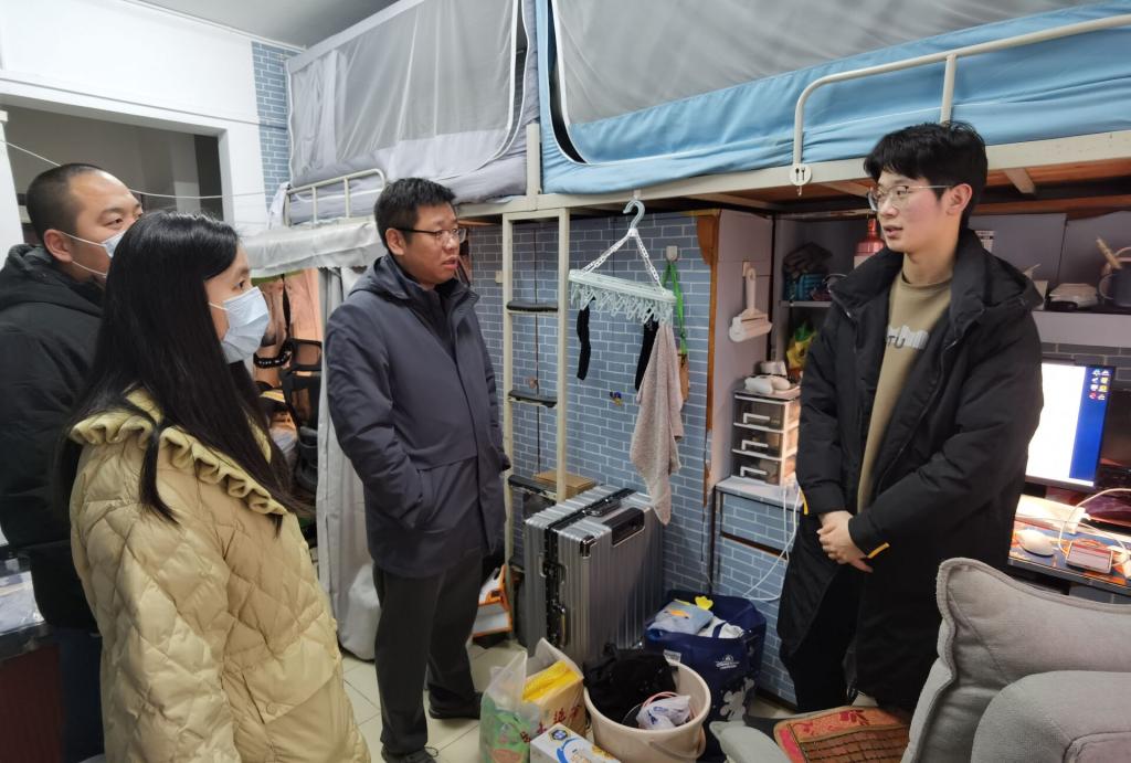 上学期,公司4位新疆员工和1位黑龙江员工受疫情影响一直未能来校报道,2月13日,学院副书记带领全体辅导员到宿舍关心慰问上学期未返校员工,详细了解寒假的学习生活情况,并询问近期身体状况、期末复习进展。魏剑书记嘱咐同学们,回学校后安心学习,把上学期落下的课程补回来,有问题及时跟老师们反映,我们一定尽力为大家做好服务。