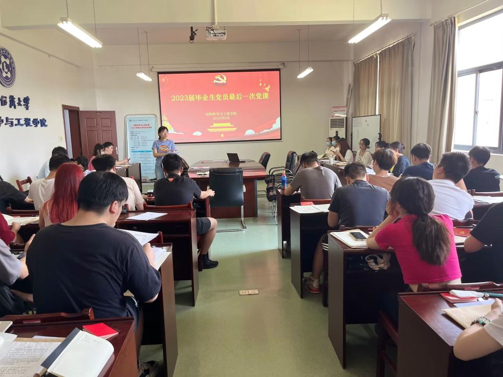 会上,曾玉竹讲解了毕业生相关事宜,毛成兴带领毕业生党员重温入党誓词,并以“如何做一名合格的共产党员”为题为毕业生党员上了专题党课。专题党课上,毛成兴带领毕业生党员学习了《关于新形势下党内政治生活的若干准则》和《中国共产党廉洁自律准则》,引导毕业生党员严守党规党纪、走上工作岗位要坚守底线、廉洁从业,并从思想政治、理论学习、付诸实践等几个方面对毕业生党员如何做一名合格的共产党员提出了要求。