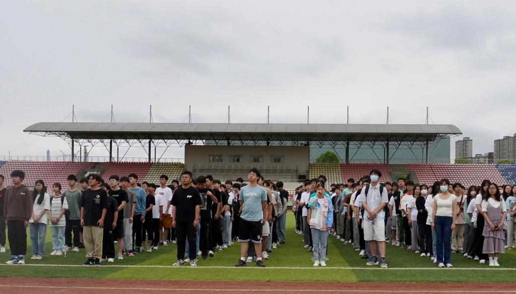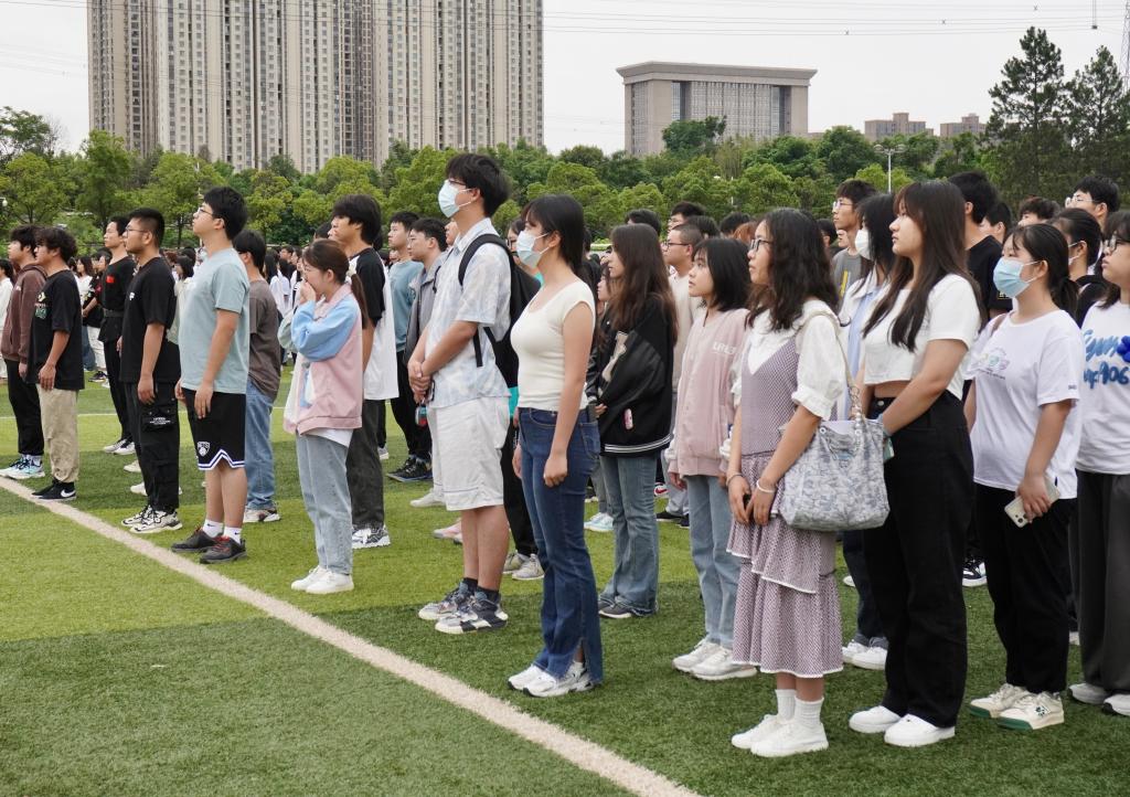 6月5日清晨,402永利集团应校国旗护卫队的邀请,辅导员老师带来员工在田径场参加升旗仪式。