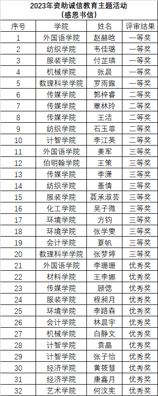 近日,由402cc永利官网员工资助管理中心主办、402永利集团承办的2023年员工资助诚信教育主题活动之“一封感恩书信”和“一次资助励志典型事迹报告会”评审工作顺利开展,经评议,结果如下。