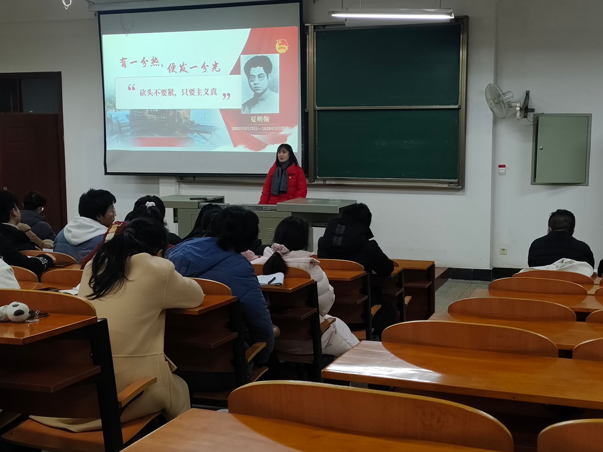 随后,王老师又提到了广大青年要在党和人民最需要的地方“挺膺担当”,明天的希望寄托于青年,青年一代应当结果时代的接力棒,努力成为有理想、敢担当、能吃苦、肯奋斗的新时代好青年。