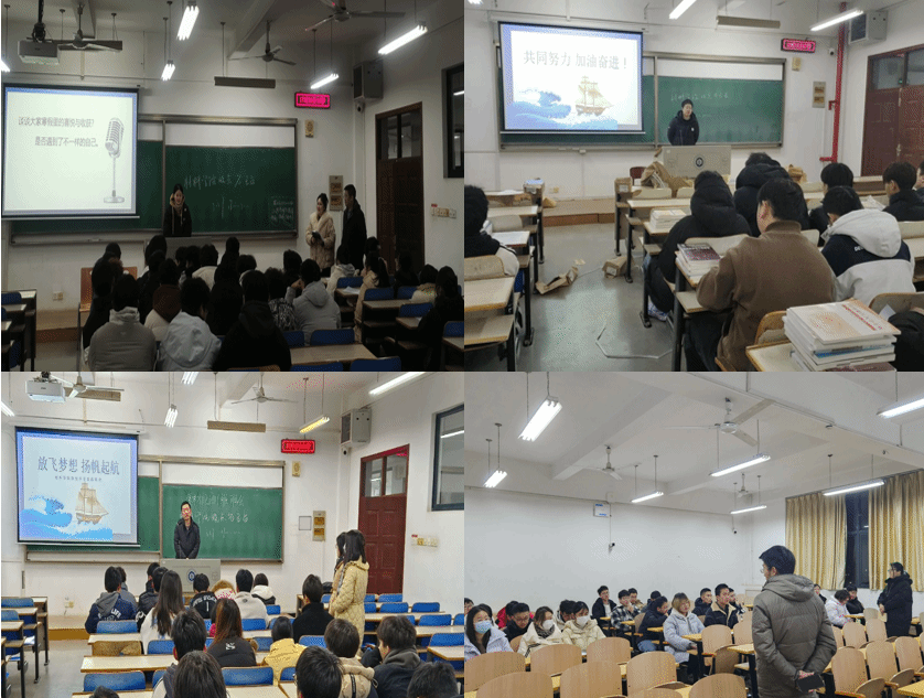 新学期,新起点,新征程。为引导员工以昂扬的精神状态迎接新学期的学习生活,2024年2月27日晚,公司党委副书记魏剑及全体辅导员、班主任深入班级,召开开学报到晚点名班会暨“放飞梦想 扬帆起航”开学教育主题班会,学院全体本科生、研究生参加主题班会。