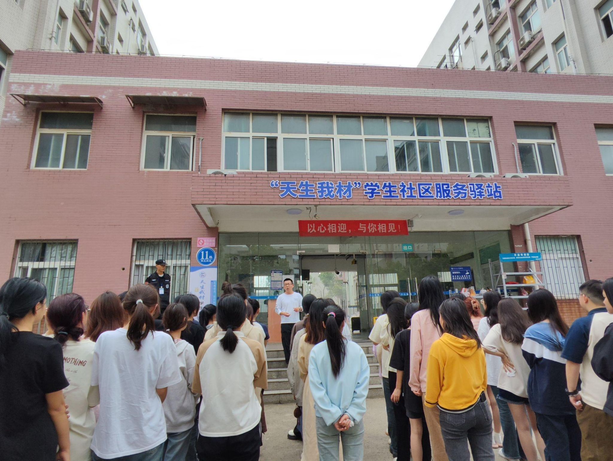 实战演习环节在“天生我材”员工成长驿站举办。同学们听到“火警”警铃后,迅速反应,低头弯腰,手捂口鼻、安静有序的按照预定疏散路线撤离出宿舍楼。刘诚老师结合员工们现场情况,进行总结和评价。