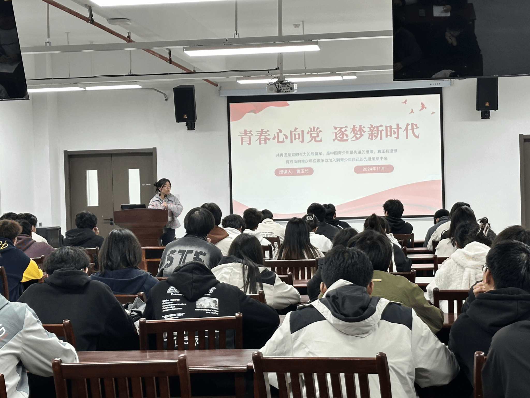11月17日下午,402永利集团在12栋教学楼317举行2024年入团积极分子团课培训第一讲,辅导员曾玉竹以“青春心向党,逐梦新时代”为主题为全体入党积极分子授课。