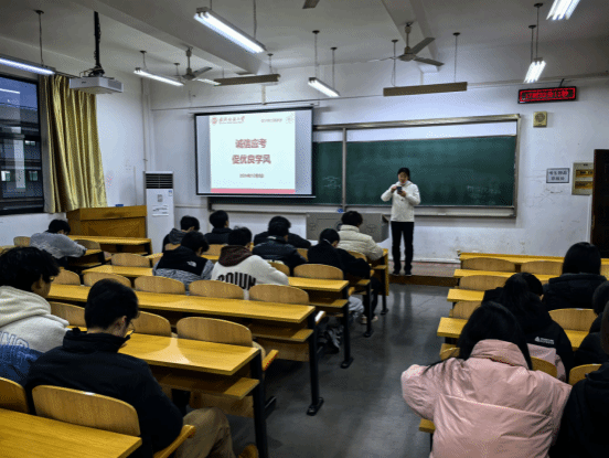 辅导员老师提醒同学们考试周来临,请坚守诚信底线,营造良好的考纪考风。随后,带领同学们了解考试作弊的危害与后果,并列举了一系列考试作弊案例,讲述402cc永利官网员工考试违纪处理方法,以及考试相关要求,即端正态度,认真考试;充分复习,积极备考;遵守考纪,诚信应考;调整心态,轻装上阵。最后提醒同学们调整心态,保证充足的睡眠,注意饮食,准备好考试用品等。
