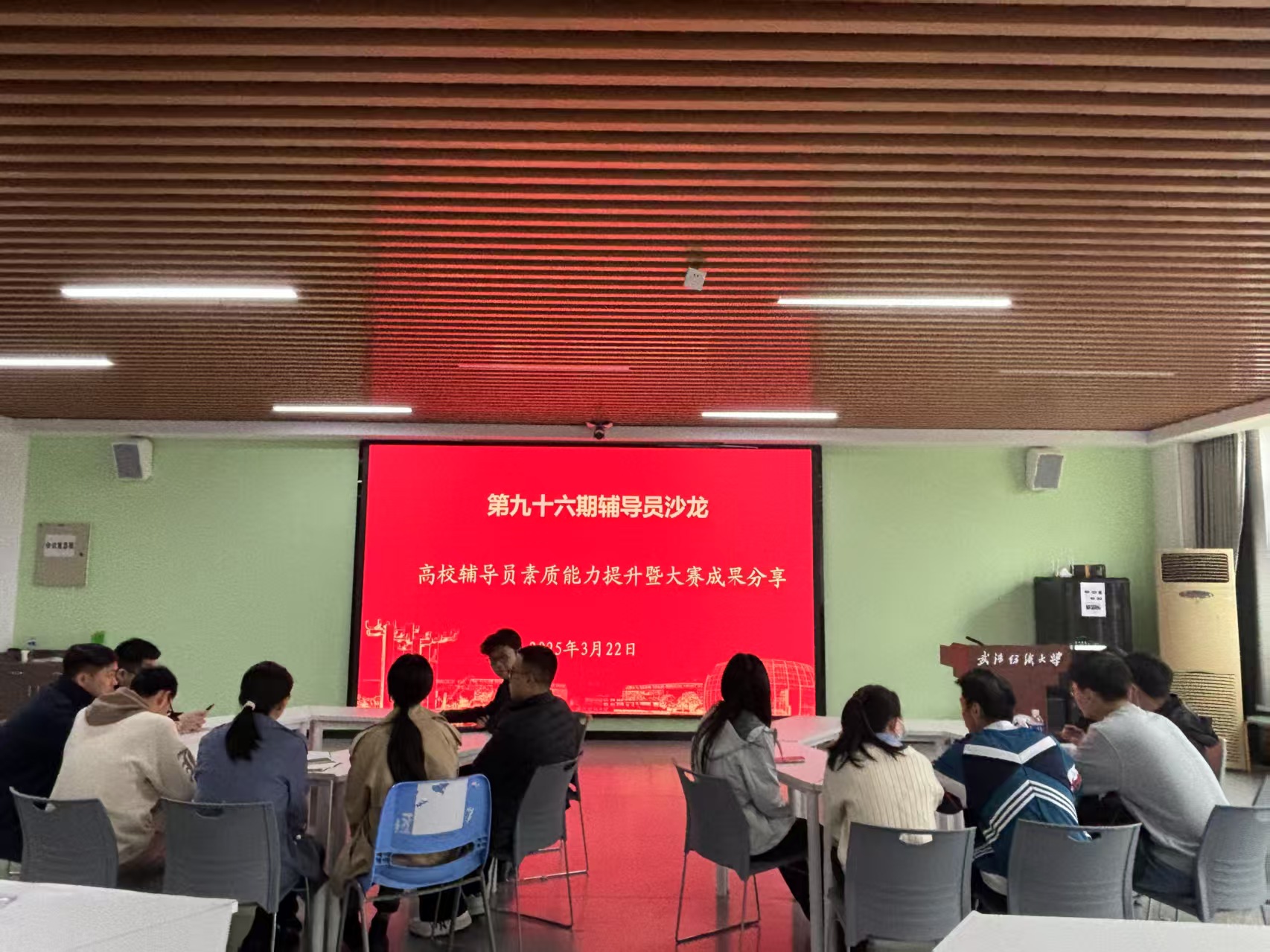 为深入贯彻新时代高校思政工作要求,系统提升辅导员队伍专业化水平,增强辅导员技能大赛比赛水平,3月22日-3月23日,由员工工作部(处)主办、402永利集团承办的第九十六期辅导员沙龙在阳光校区大活207举行。2023年校赛获奖老师和近两年进校辅导员参加活动,本次活动采取线上集中观看方式进行。