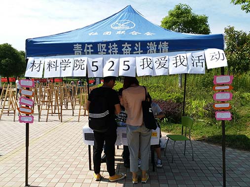 5月25日,402永利集团心理工作站在二食堂门口举办了"我爱我”暨阳光心灵展活动。