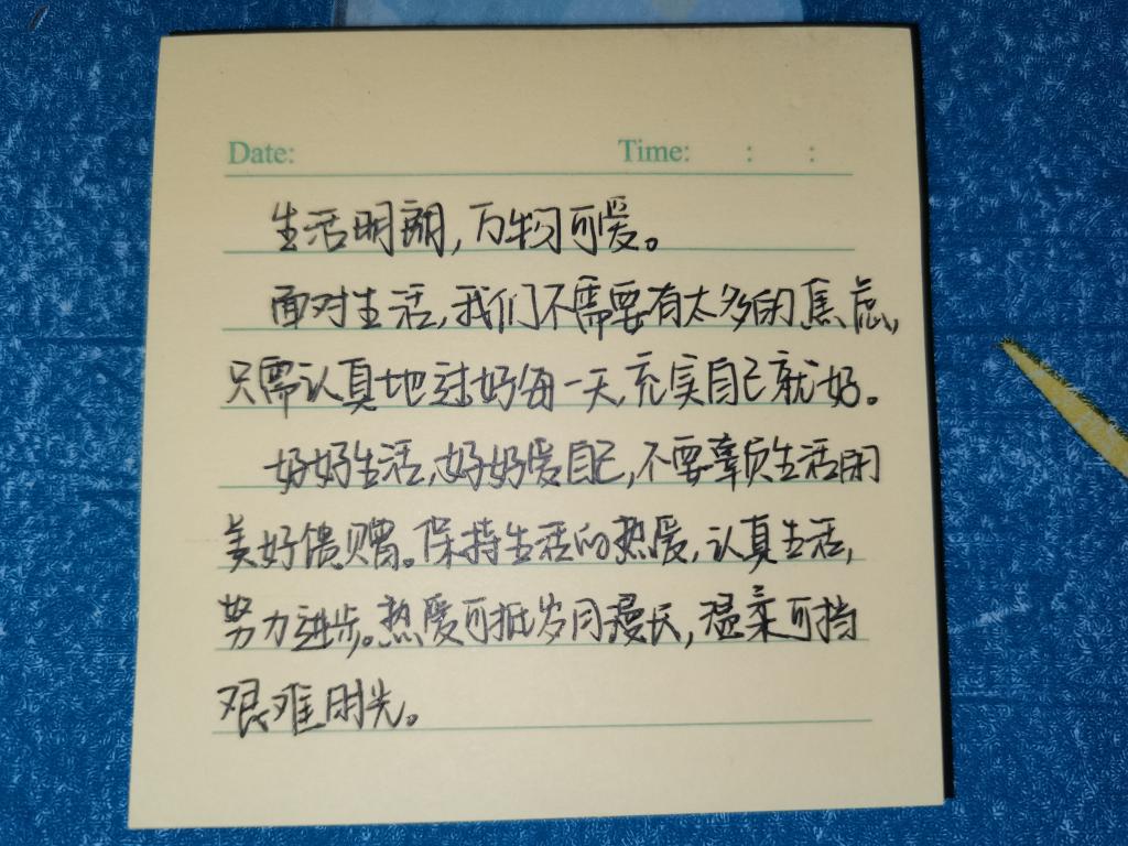 本次活动分为线上、线下两种方式开展,在线下活动中,由参与者写上一句鼓励自己或者祝福他人的话语之后贴在留言板上,不仅使参与者进行了自我激励的心理暗示,更提醒了我们要关心身边的人;在线上活动中,收集参与者的邮件,并在我们学院“天生我材”公众号进行展示。自我的鼓励让自己能够获得信心,让自己能够有动力去前行,让自己乐观的面对一切,成功就离自己近了一步!