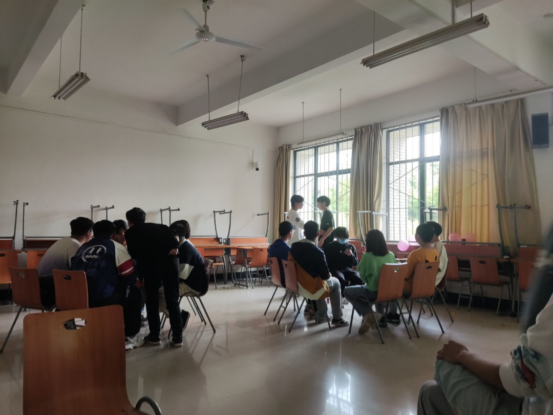 材料12106班:首先是通过小游戏进行了分组,分组结束后,大家八个人一组进行下面的游戏。期间多位同学因为输了游戏上台给同学们表演节目,其中不乏歌舞类的节目。然后大家进行了踩气球游戏。大家通过小游戏,组成两两一队,一个同学防守一个同学进攻,但两个同学必须拉着手不能松开。同学们在活动中收获快乐,同时也释放了身心压力。