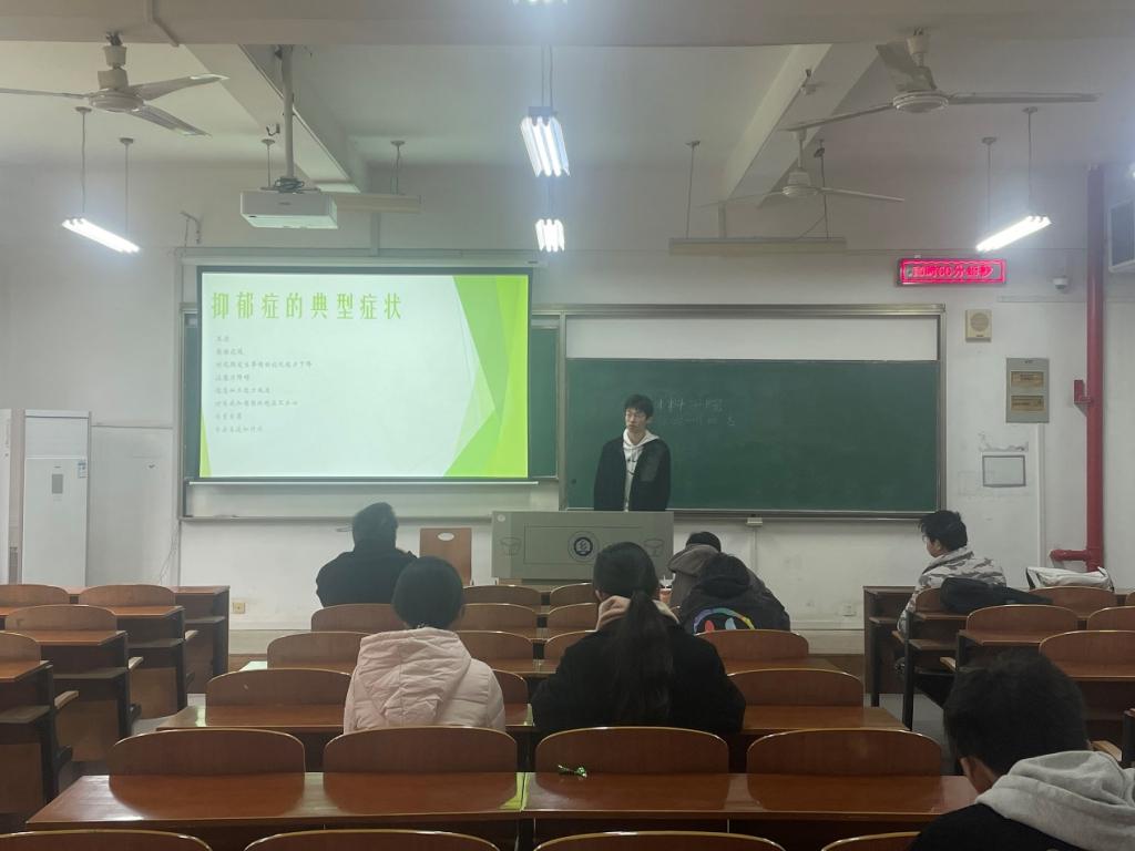 培训会由浅入深,介绍了抑郁症的由来以及抑郁症向另一分支阳光型“抑郁症”的演变。胡泽轩讲解了抑郁症的基本特点,利于同学们自查是否患有抑郁症,或有其前期症状,便于心理委员及时发现有症状的同学。要求心理委员在发现患有抑郁症同学后,多鼓励,多倾听,让患者感受到被爱与被关心,不再有自卑心理,特殊情况需向辅导员老师反映。
