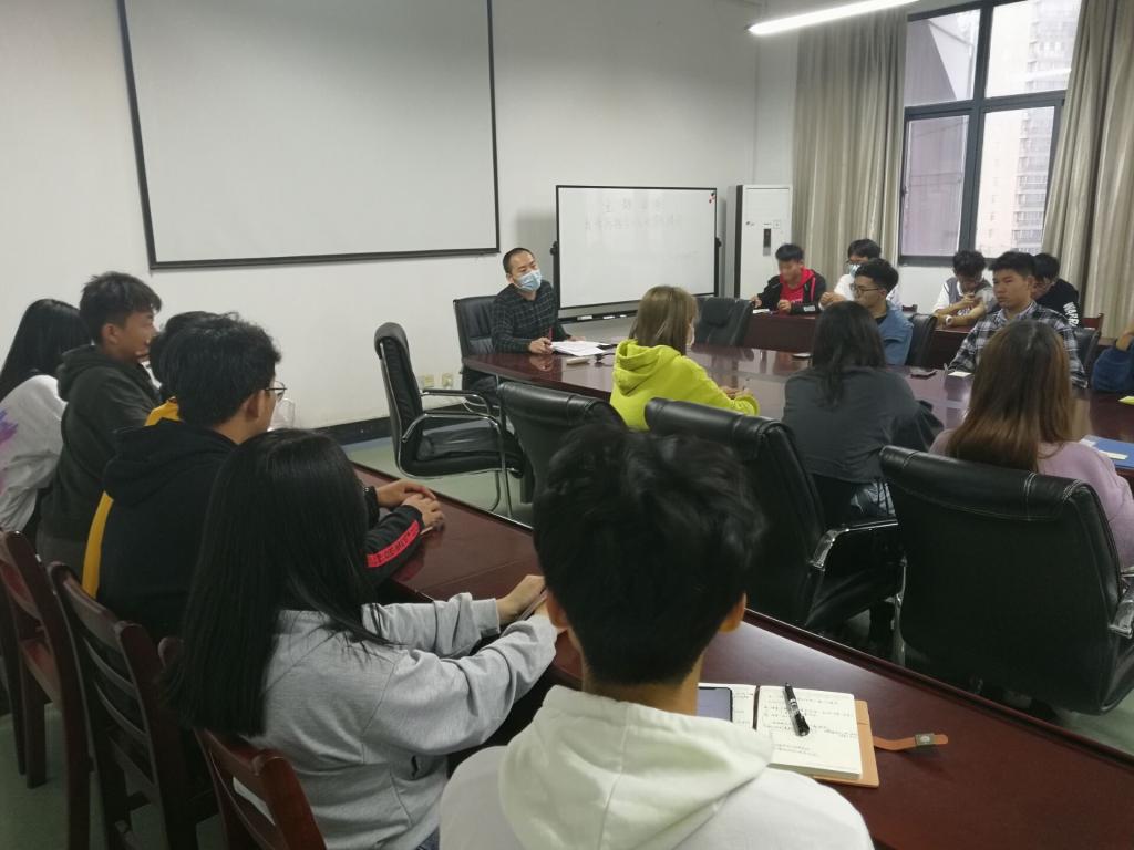 11月14日下午,402永利集团辅导员毛成兴在8F-506给大一班委上团课,团课主题为“疫情防控”和“班风学风建设”。20级所有班委听取了本次团课。